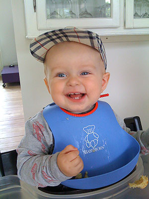 Frokost hos farmor og farfar iført Burberry-kasket, indkøbt i Firenze.