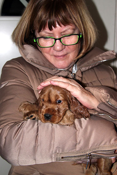 2015 - Ollie Joe Cocker. Julegaven til os selv var en Cocker Spaniel hvalp, født den 18. november, og her 6 uger gammel, hvor vi valgte ham blandt 7 søskende. Flaskebarn som sin far, og vandt til at komme op og få menneskekontakt. Ikke til at stå for!
